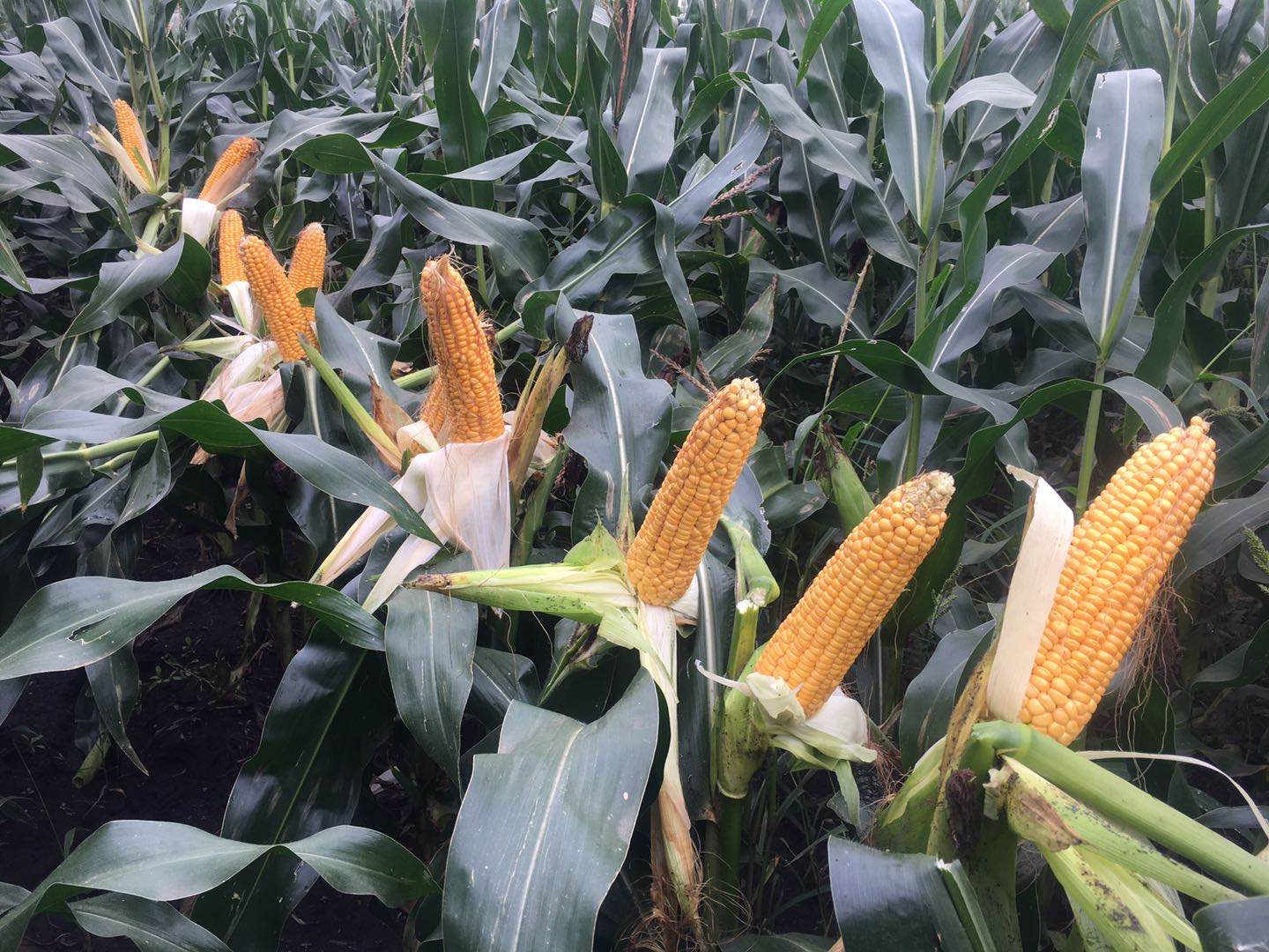 【特征特性】在適應(yīng)區(qū)出苗至成熟生育日數(shù)為107d左右,需≥10℃活動(dòng)積溫2020℃左右。株高230cm左右,穗位高80cm左右,成株可見(jiàn)12片葉。果穗筒型,穗軸白色,穗長(zhǎng)18.5cm左右,穗粗4.8cm左右,穗行1216行,籽粒偏馬齒形、黃色,百粒重36g左右。兩年品質(zhì)分析結(jié)果:容重762791g/L